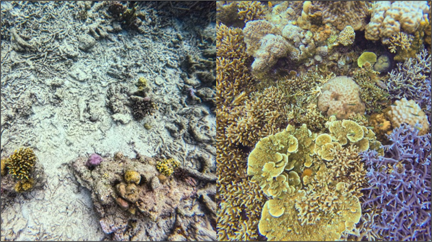 Mars data scientists competed to train machine-learning based models which could identify the difference between degraded (left) and healthy (right) reefs