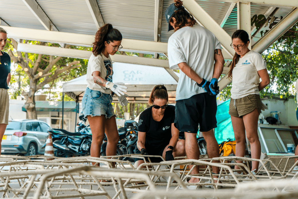The build event was attended by members of the Cartagena community and dozens of local Colombians who responded to an online call for volunteers on social media which Corales de Paz received an overwhelming response to. Although the sea surface conditions were challenging for coral tying on a boat and underwater visibility less than ideal due to a delayed end to the raining season, the build was a complete success, and the team will return to install another 50 reef stars across 2025.