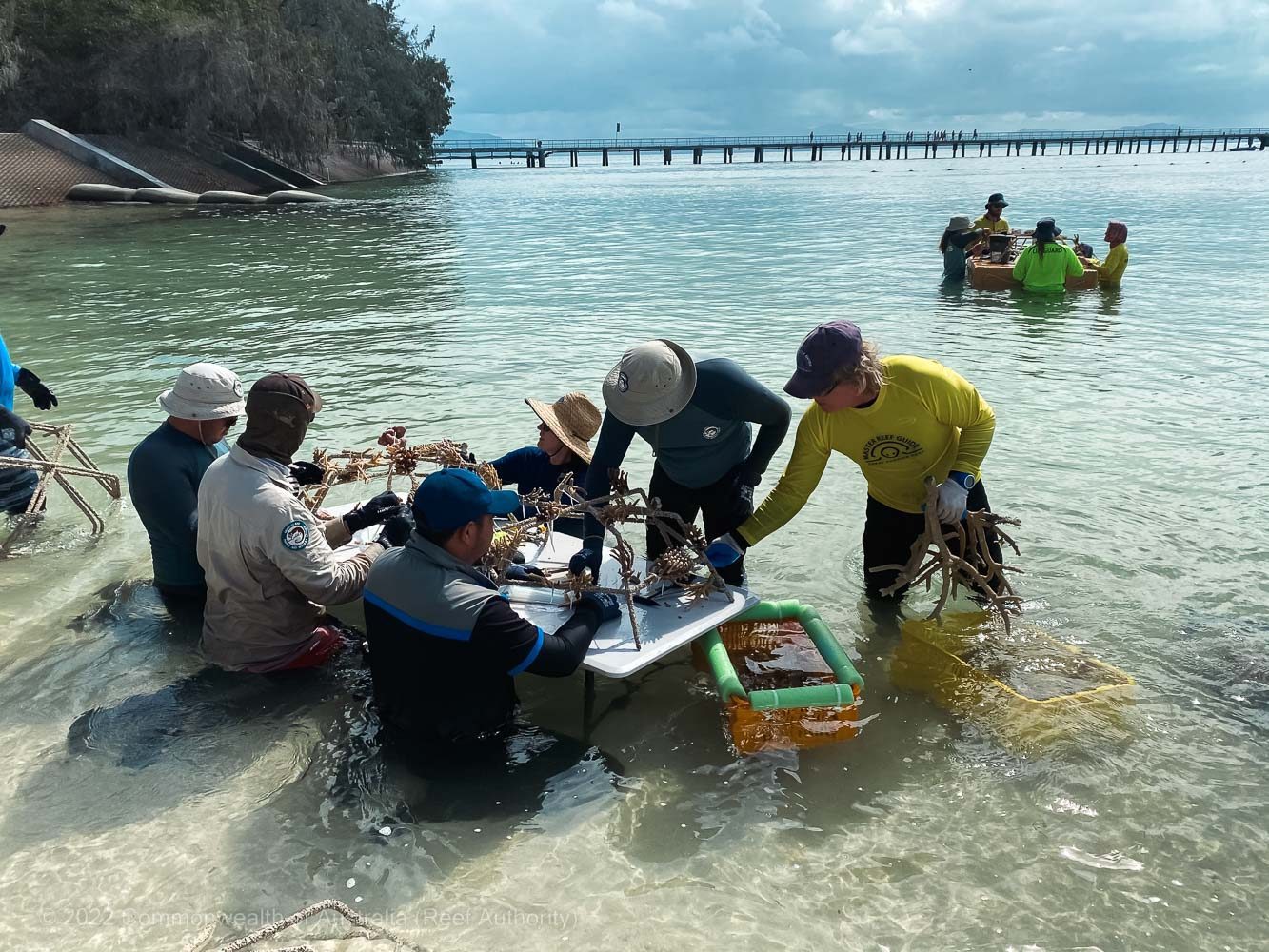 The Green Island rehabilitation project was launched to test the effectiveness of Reef Star restoration on Green Island as a flexible method in the restoration toolbox for the Great Barrier Reef. This partnership also facilitated the training of a group of competent reef builders, capable of being deployed when and where they are needed. The project will run over 5 years and involve ongoing and regular site management and detailed monitoring every six months.