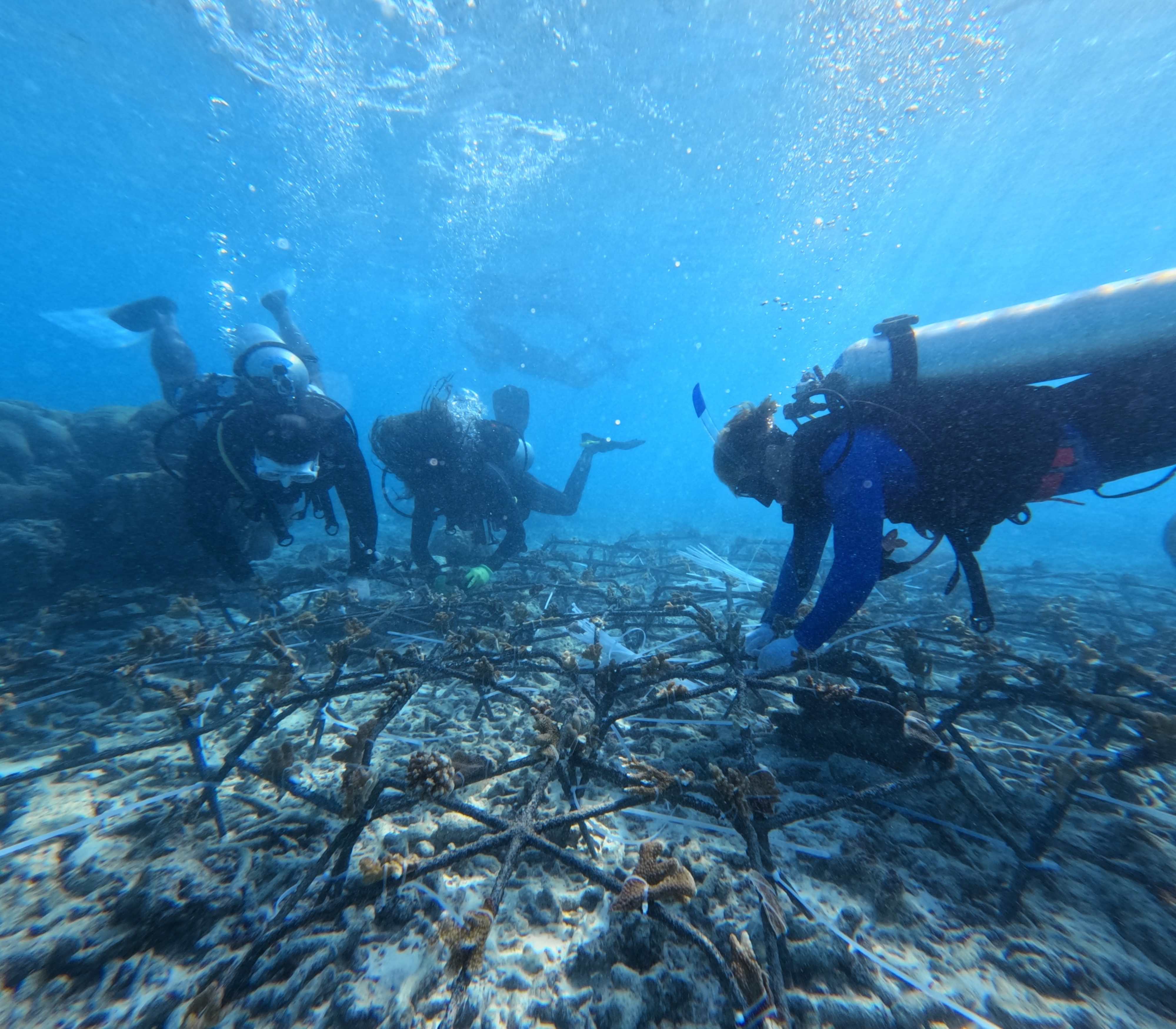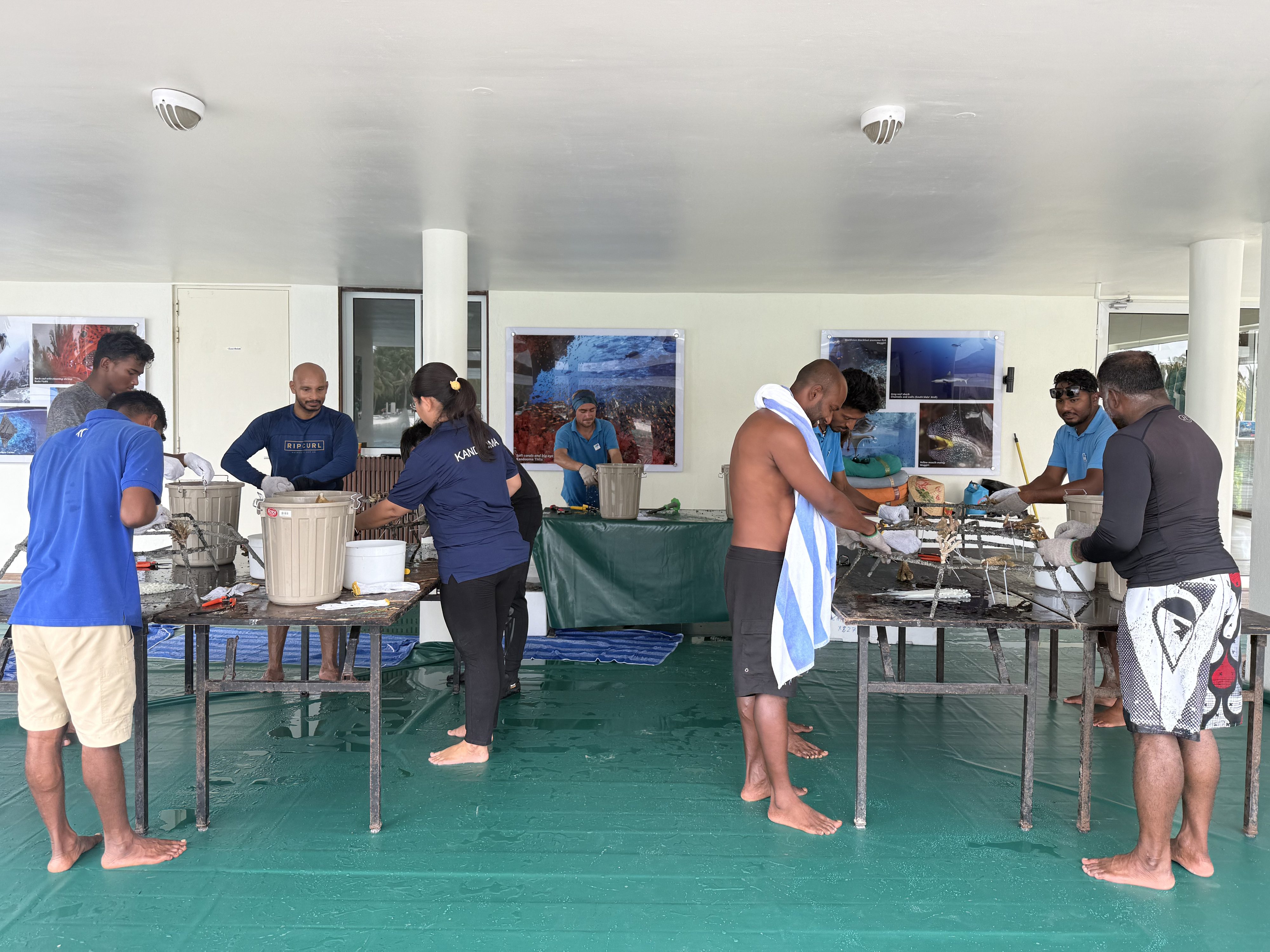 As part of Holiday inn Kandooma Marine Conservation program recognizing the importance of coral reefs Holiday Inn partnered with Mars to help revitalize their house reef. In November 2022, Mars Sustainable Solutions trained the team at Holiday Inn Kandooma to restore their house reef installing 100 Reef Stars on the degraded house reef, outplanting 1,500 coral fragments.