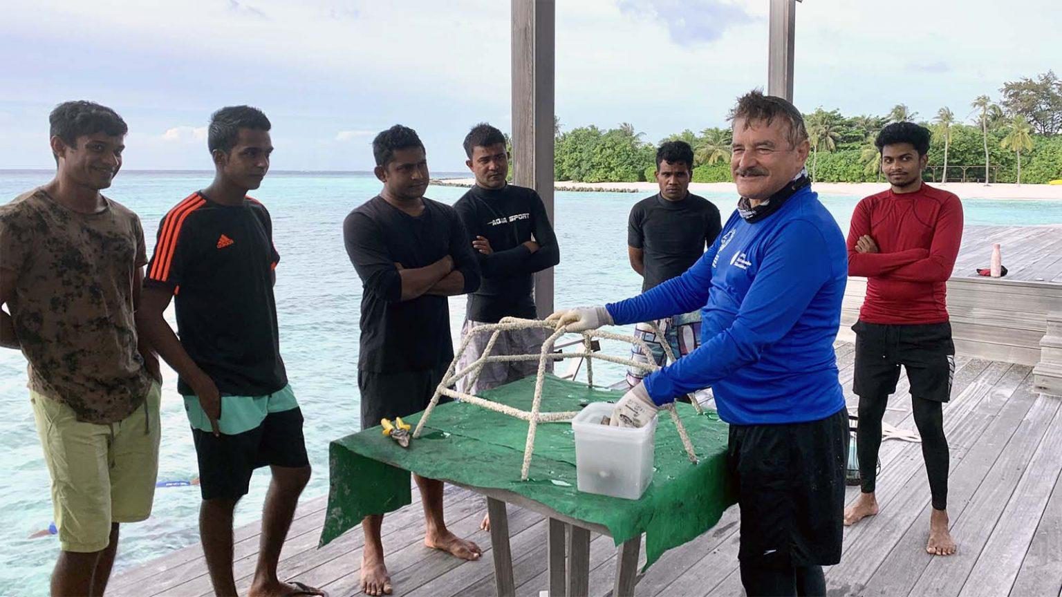 The Hurawalhi team receiving training in the MARRS restoration technique