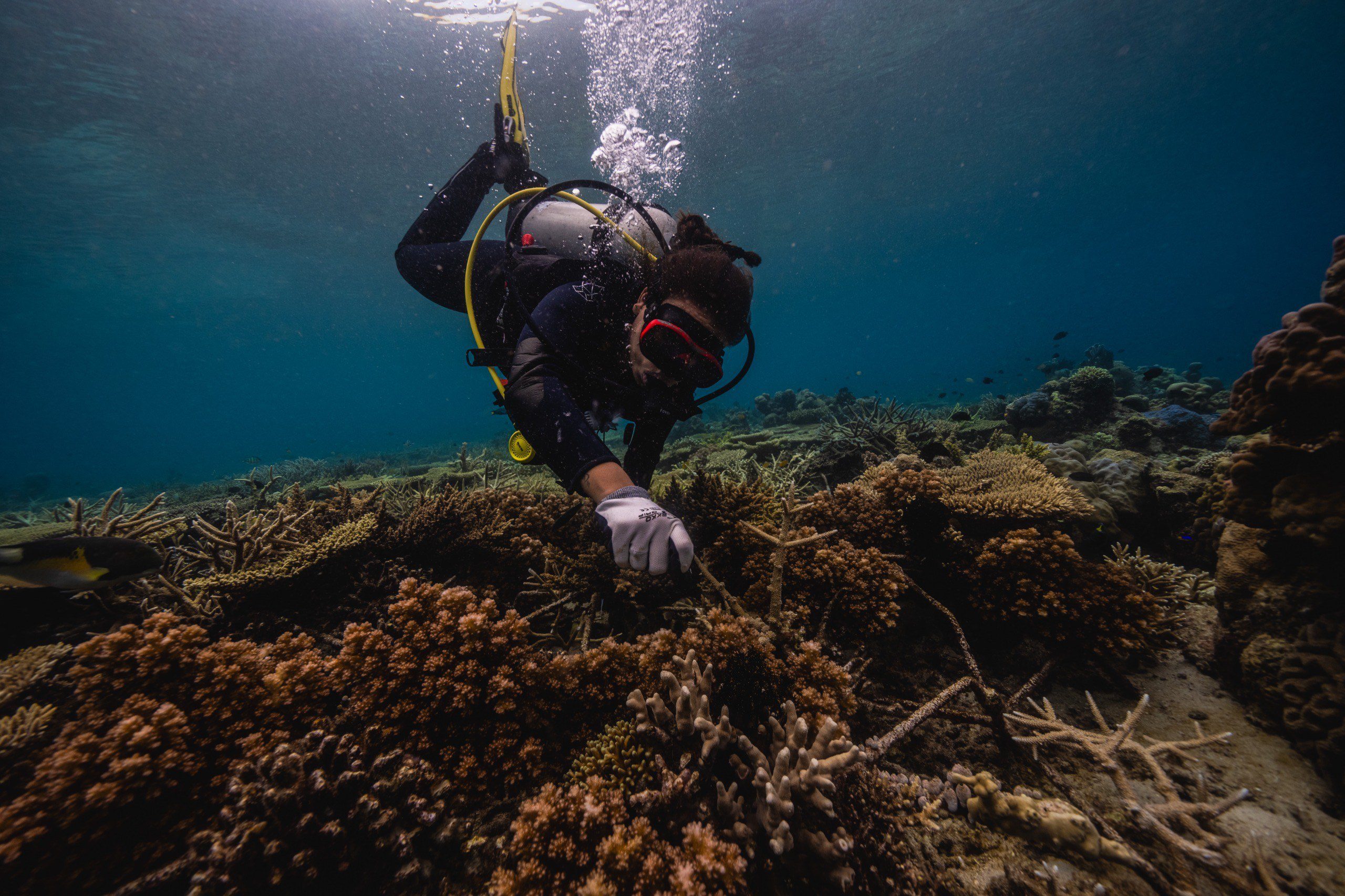 Emma Batty Sukerta diving on Sheba Hope Reef