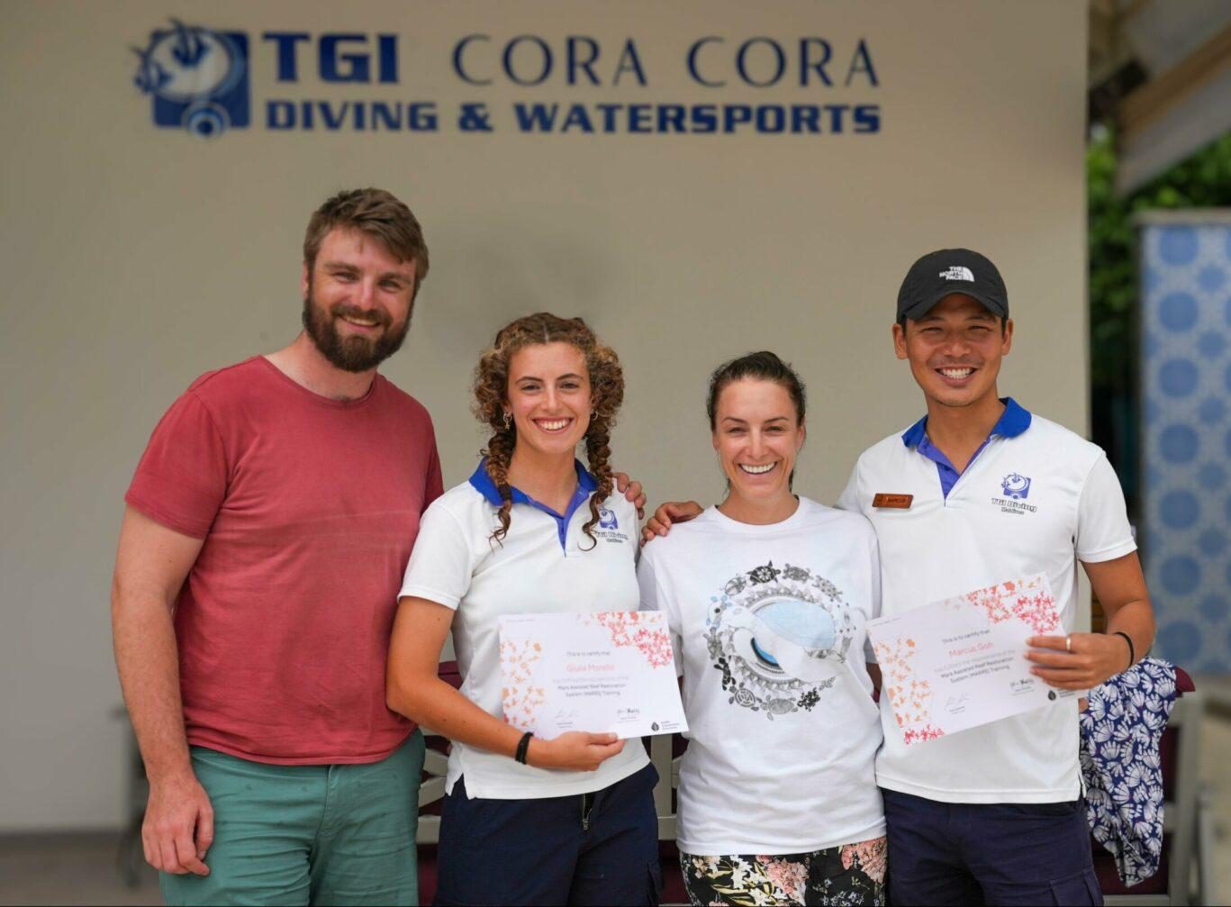 In 2023, a partnership was formed between Cora Cora Resort and Mars Sustainable Solutions. Two members of the Cora Cora resort team, Diving Center Manager Marcus Goh and Marine Biologist Giulia Morello were trained in Reef Star fabrication and installation to become certified MARRS Reef Builders.
