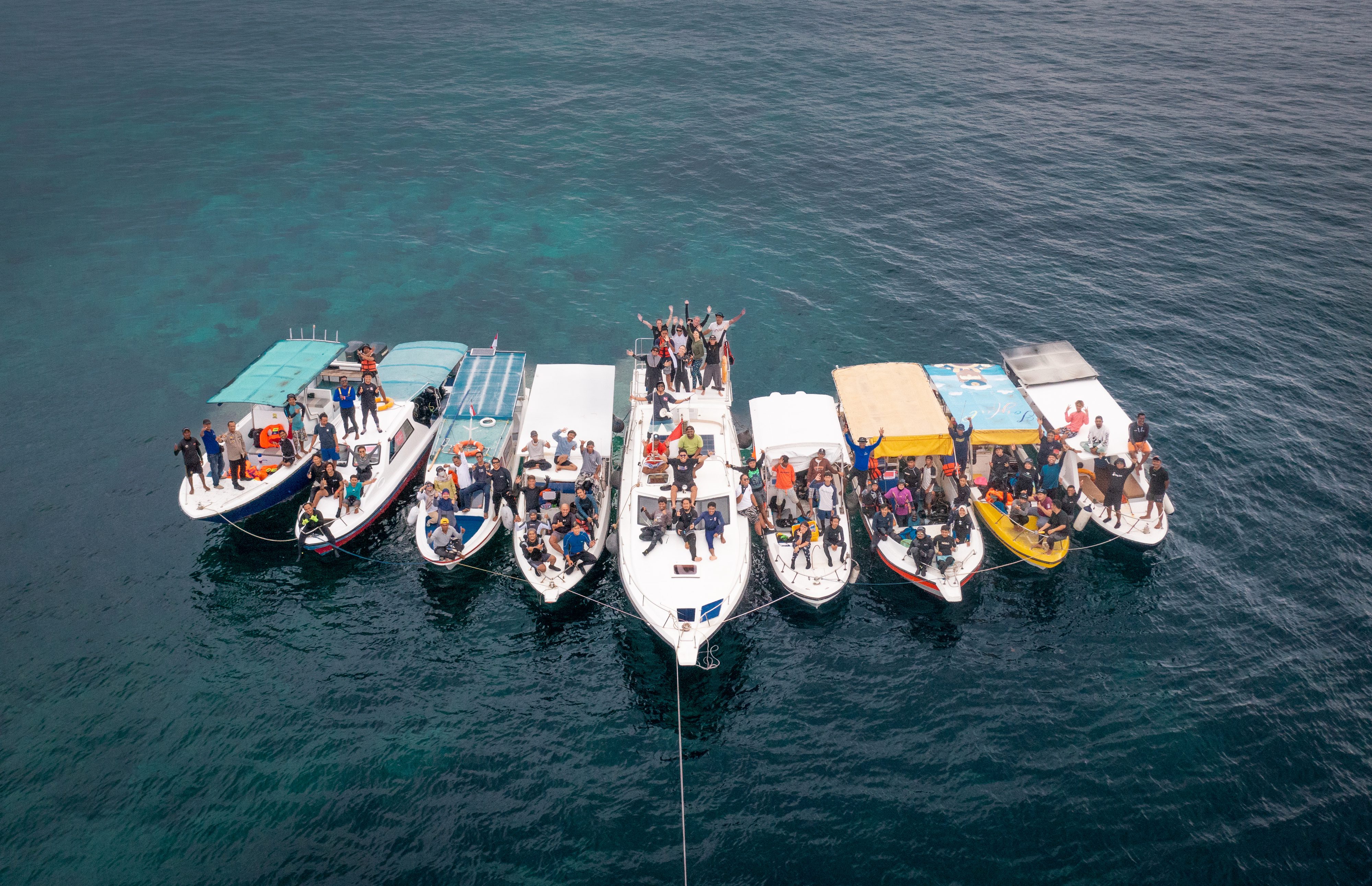 Day Three: Time to repeat day two and get back out to the reef! The flotilla set off again and we joined the local community in the water to prepare the final Reef Stars. After a successful shuttle and two dives, all build teams had completed the final restoration build. The day three debrief was a huge celebration and a reflection of what can be achieved through the power of partnerships - 30,000 coral fragments out planted, and roughly 2,500 square meters of reef restored!