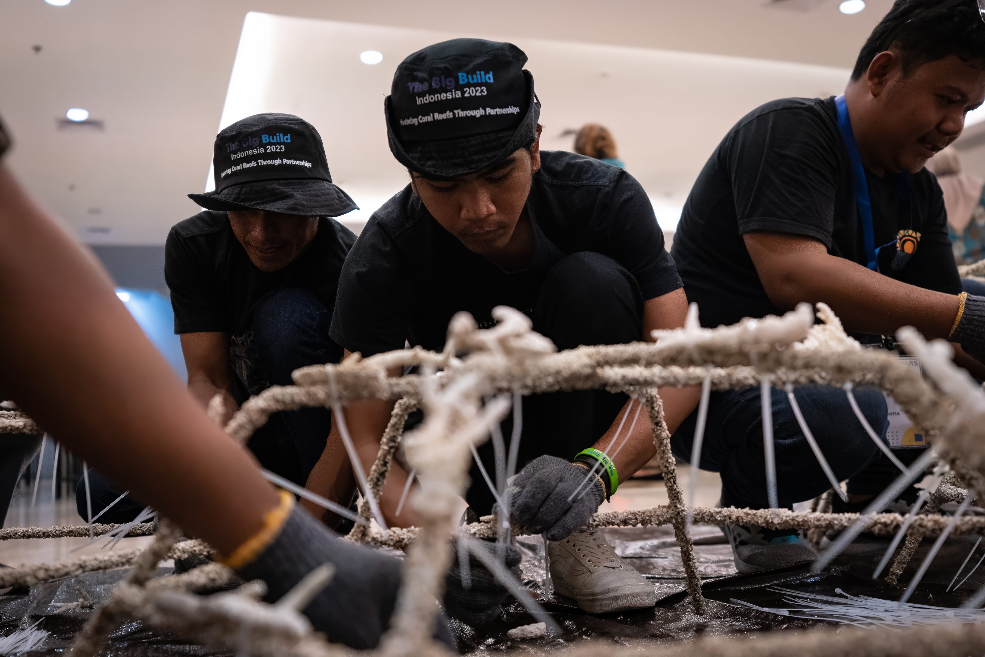 The Big Build transported us back to the origins of the program and our flagship restoration site, in the Spermonde Archipelago, Indonesia – at the heart of one of the most diverse and biologically complex areas on the planet, The Coral Triangle. The event brought together over 100 participants from 17 Indonesian conservation and science partners across government, NGO, business sectors, and local communities, demonstrating and championing the importance of partnerships to achieve large-scale coral restoration.